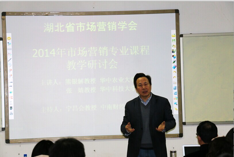 市场营销学会会长、我院市场营销系教授(博导)田志龙和全省25所高校的相关教师齐聚一堂。市场营销学会副会长、来自中南财经政法大学的宁昌会教授主持本次会议。