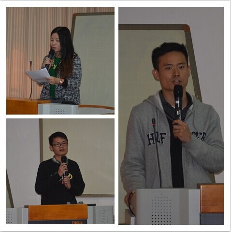 党建工作办公室学生副主任张凯(左下)、11级辅导员刘雯雯(左上)、党建辅导员龙志(右)