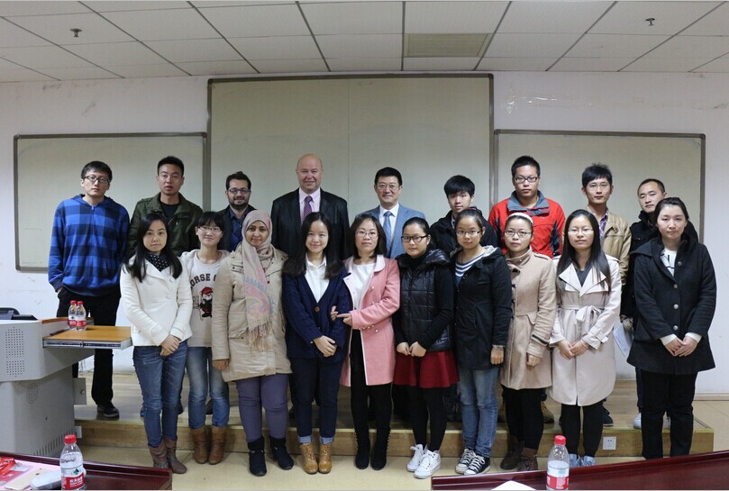 讲座伊始,余翔教授向大家简要介绍了Straus博士的学习和工作经历。随后,Straus博士向大家以介绍欧洲及欧盟的人口、经济简况为引子,结合欧洲专利体系发展的历史和现状,对拟议中的欧盟专利制度进展和前景进行了深入浅出的讲解,包括审批、专利无效、诉讼等各个环节,清晰地阐述了欧盟专利制度的计划和推进现状。最后在互动环节,博士生张奔、Ruben Marano(意大利留学生)以及硕士生谢凯等就自己感兴趣的问题与Straus博士进行了交流, Straus博士一一细致解答。